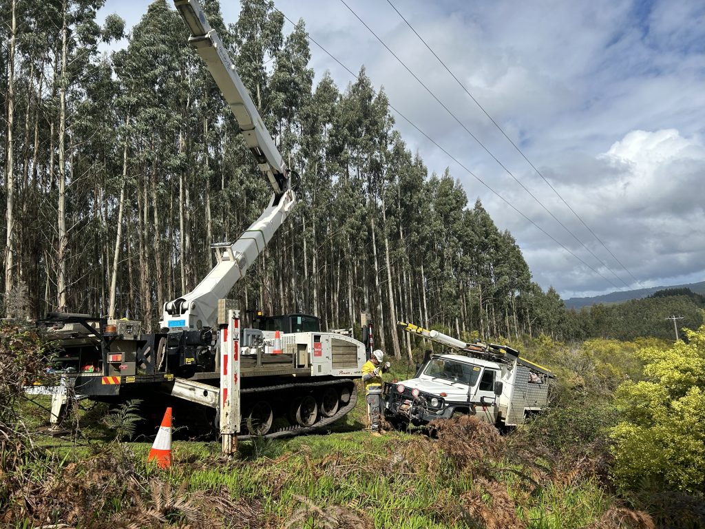Two customers remained off supply while crews completed repair works on Wednesday, with teams from Colac and Geelong working to repair the broken powerline and re-string the fallen conductors back on top of poles and insulators.