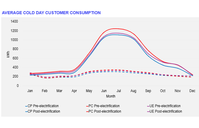 We tracked thousands of customers from before they electrified until after they electrified and we found a four-fold increase in their power consumption, especially in winter.